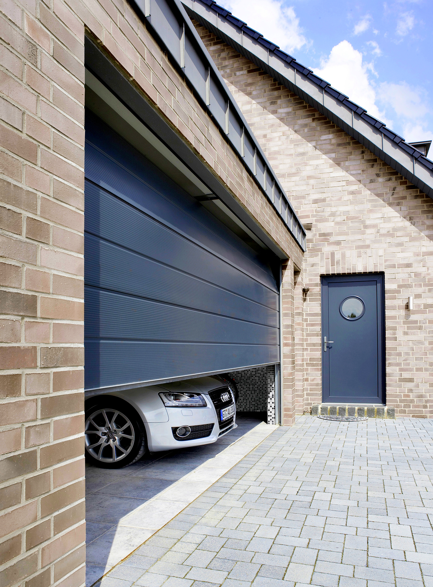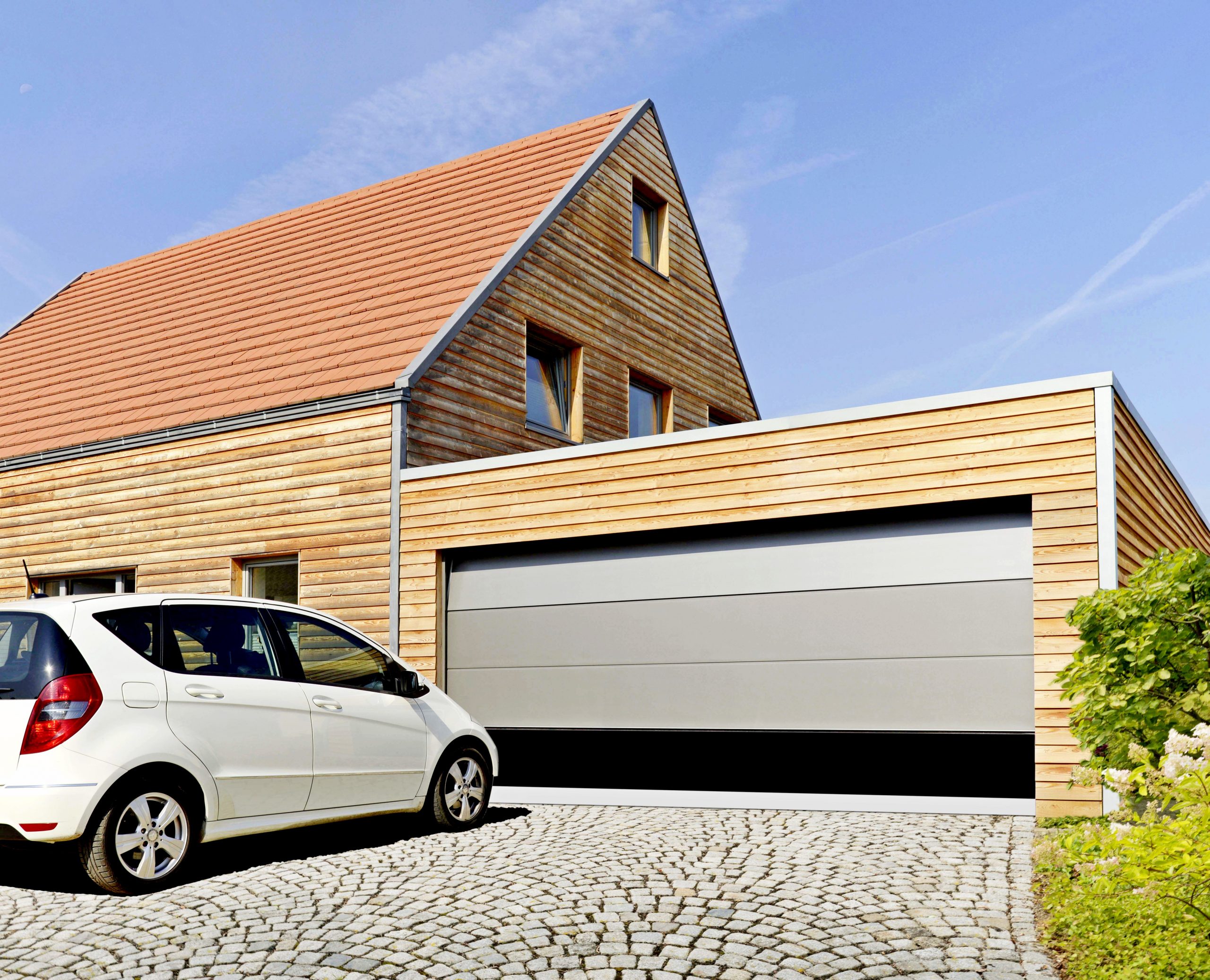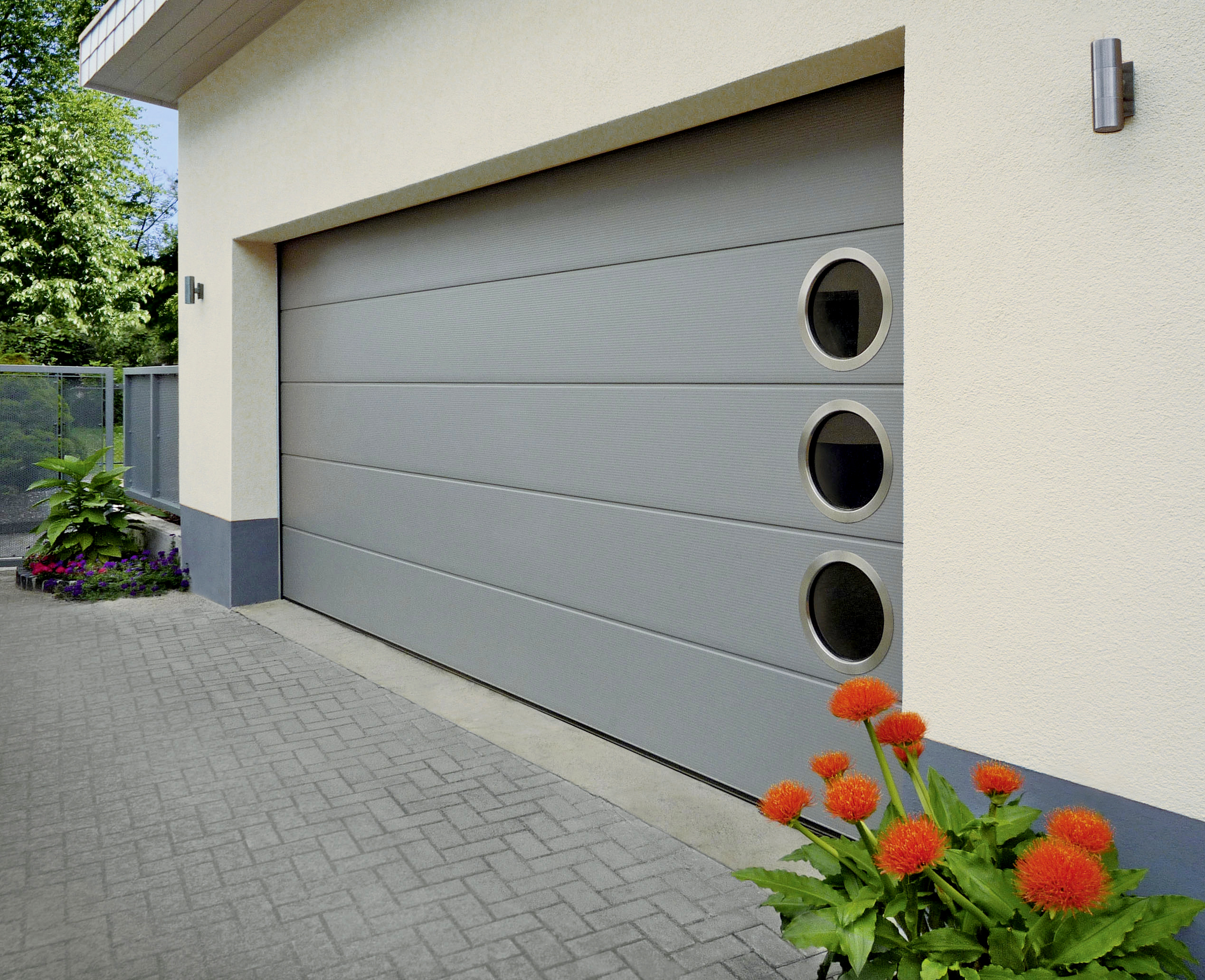 Sektionaltore benötigen dank der vorteilhaften Senkrechtöffnung wenig Platz vor und in der Garage, im Gegensatz zu herkömmlichen Schwingtoren, die nach außen aufschwingen. Das aus mehreren, miteinander verbundenen Sektionen bestehende Torblatt läuft in seitlichen Schienen nach oben. So kann das Auto direkt vor der Garage geparkt werden. Unsere Kunden können sich stets über hochfunktionale, sichere Modelle freuen und genießen darüber hinaus umfassende Gestaltungsvielfalt. Das Sektionaltor kann mit einer Schlupf-und Nebentür kombiniert. Unsere Sektionaltore sind durchgehend 40 Millimeter dick und doppelwandig. Das schützt in der Garage vor Kälte, was nicht nur dem darin geparkten Fahrzeug zu Gute kommt, sondern auch insofern sehr praktisch ist, da man den Platz in der Garage häufig als Werkstatt oder Hobbyraum nutzt und oft auch eine direkte Verbindung zum beheizten Wohntrakt besteht. Auch unsere verglasten Sektionaltore erfüllen die Bedingungen für optimale Energieeffizienz.