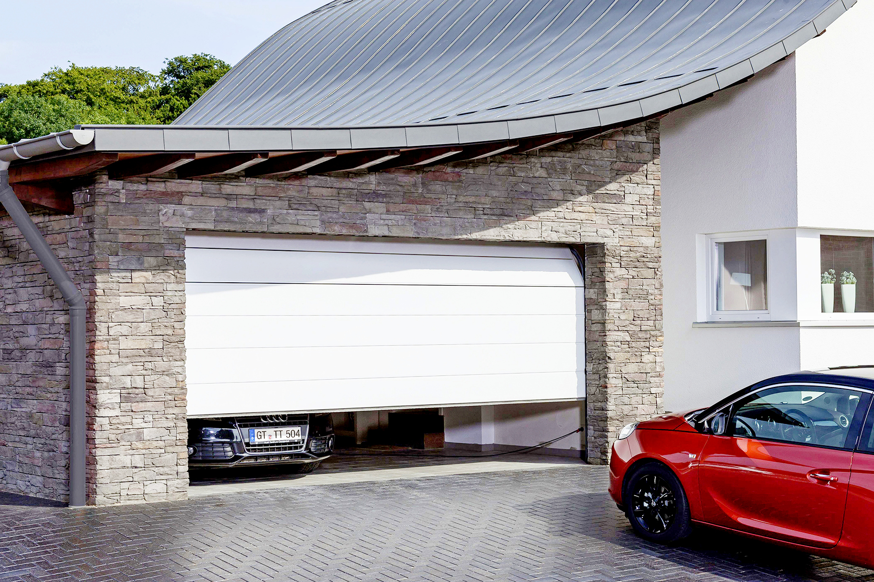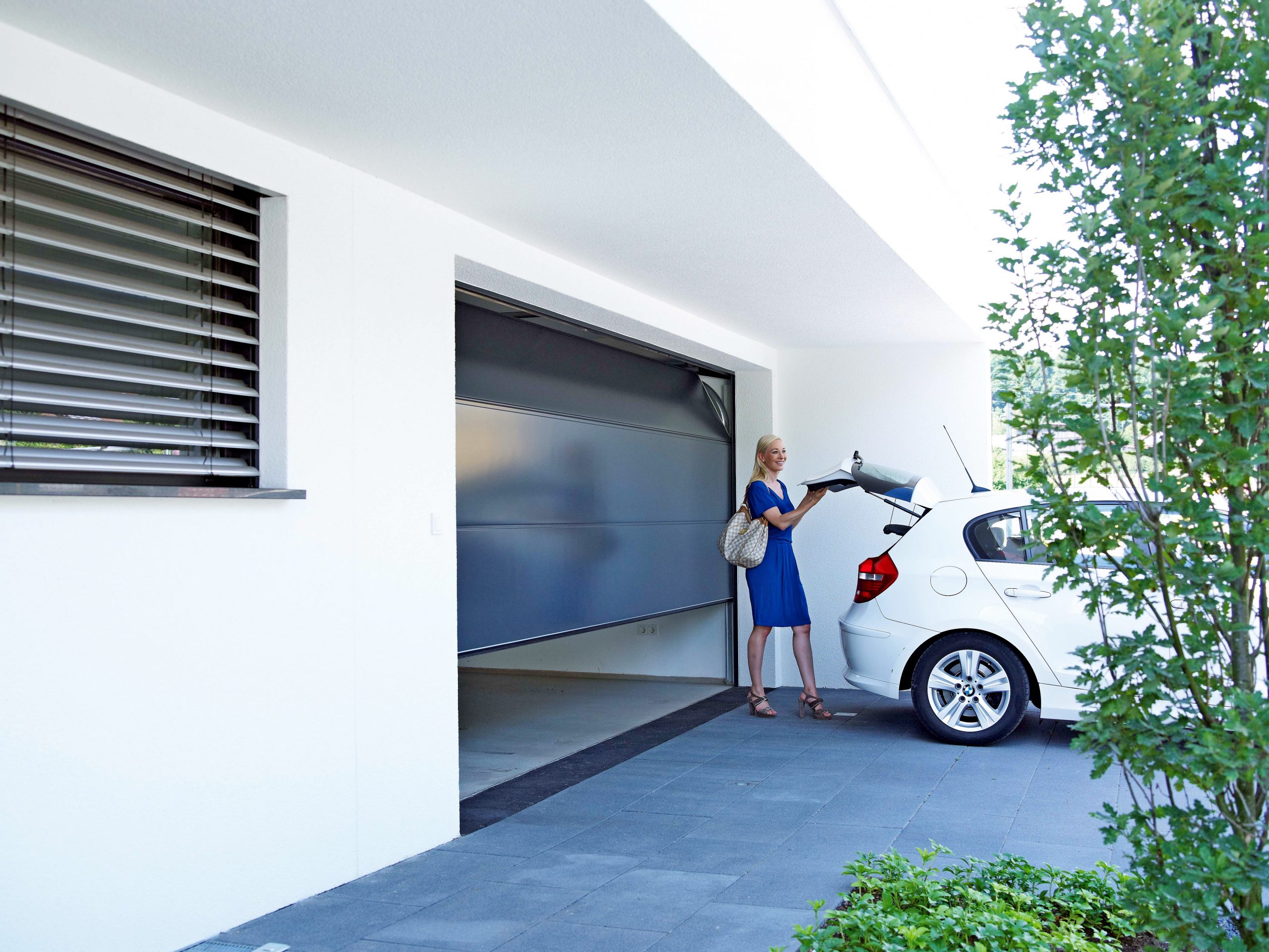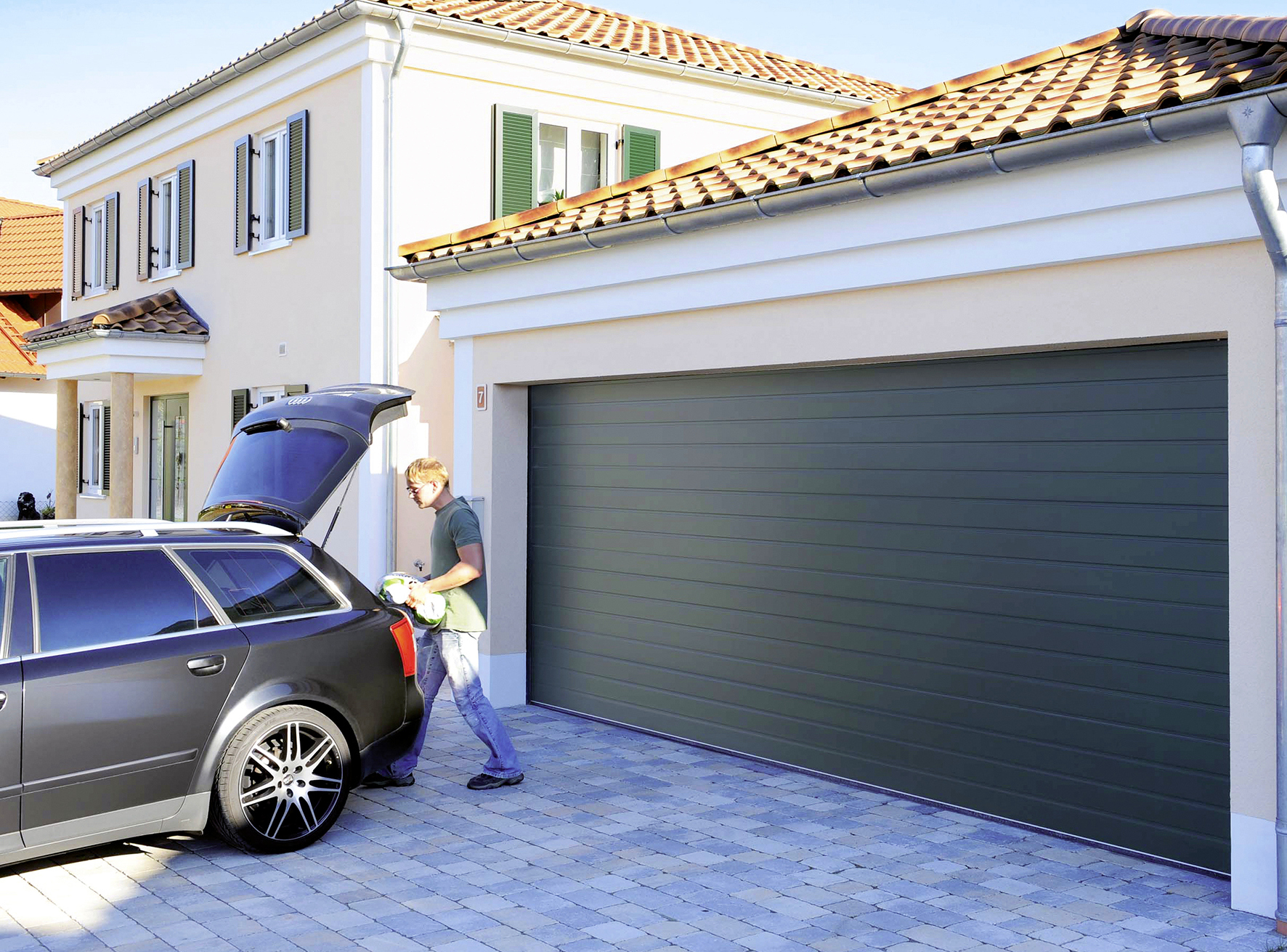 Sektionaltore benötigen dank der vorteilhaften Senkrechtöffnung wenig Platz vor und in der Garage, im Gegensatz zu herkömmlichen Schwingtoren, die nach außen aufschwingen. Das aus mehreren, miteinander verbundenen Sektionen bestehende Torblatt läuft in seitlichen Schienen nach oben. So kann das Auto direkt vor der Garage geparkt werden. Unsere Kunden können sich stets über hochfunktionale, sichere Modelle freuen und genießen darüber hinaus umfassende Gestaltungsvielfalt. Das Sektionaltor kann mit einer Schlupf-und Nebentür kombiniert. Unsere Sektionaltore sind durchgehend 40 Millimeter dick und doppelwandig. Das schützt in der Garage vor Kälte, was nicht nur dem darin geparkten Fahrzeug zu Gute kommt, sondern auch insofern sehr praktisch ist, da man den Platz in der Garage häufig als Werkstatt oder Hobbyraum nutzt und oft auch eine direkte Verbindung zum beheizten Wohntrakt besteht. Auch unsere verglasten Sektionaltore erfüllen die Bedingungen für optimale Energieeffizienz.